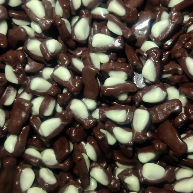 Ingredients: Sugar, Glucose Syrup: (Corn), Gelatine, Acid: (330), Gelling Agent: (Pectin), Flavours, Colours: (102, 129, 133, 171), Vegetable Oil: (Coconut, Palm), Glazing Agent: (901, 903)
